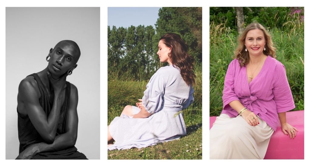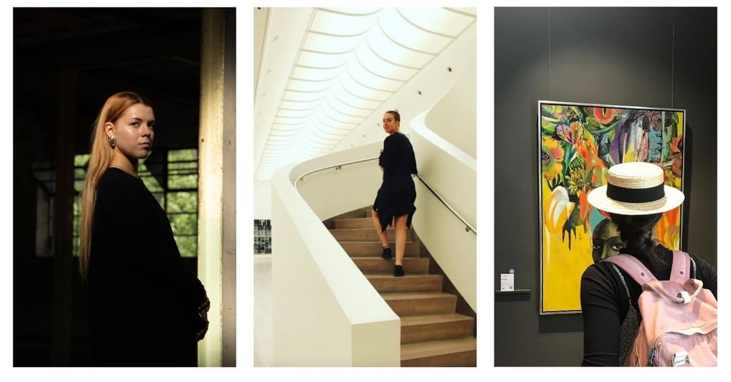 Middle image: The subject looks back over their shoulder — a classic gesture of invitation. The partial gaze draws viewers into the environment while still maintaining a sense of mystery. In visual semiotics, this is known as a “demand gaze,” implying the subject wants the viewer to follow or engage.